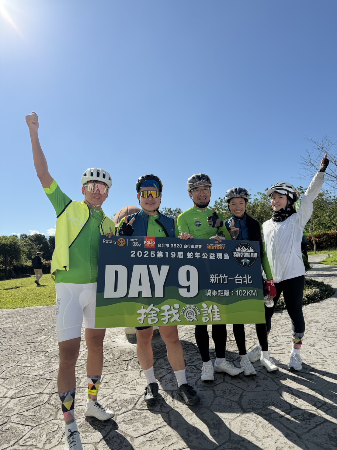國際扶輪3521地區於 11月15日至11月23日 展開自行車「2025蛇年公益環島」活動,隊伍自 大佳河濱公園8號水門 正式出發。首日天氣晴朗,參與騎士們精神飽滿,在歡笑、汗水與彼此的鼓勵中,為公益踏出堅定的第一步。沿途騎行、補給、再出發,每一段路都承載著團結與善意。我們秉持「一起出發、一起到達」的精神,讓愛與公益的力量在環島的九天旅程中持續延伸。