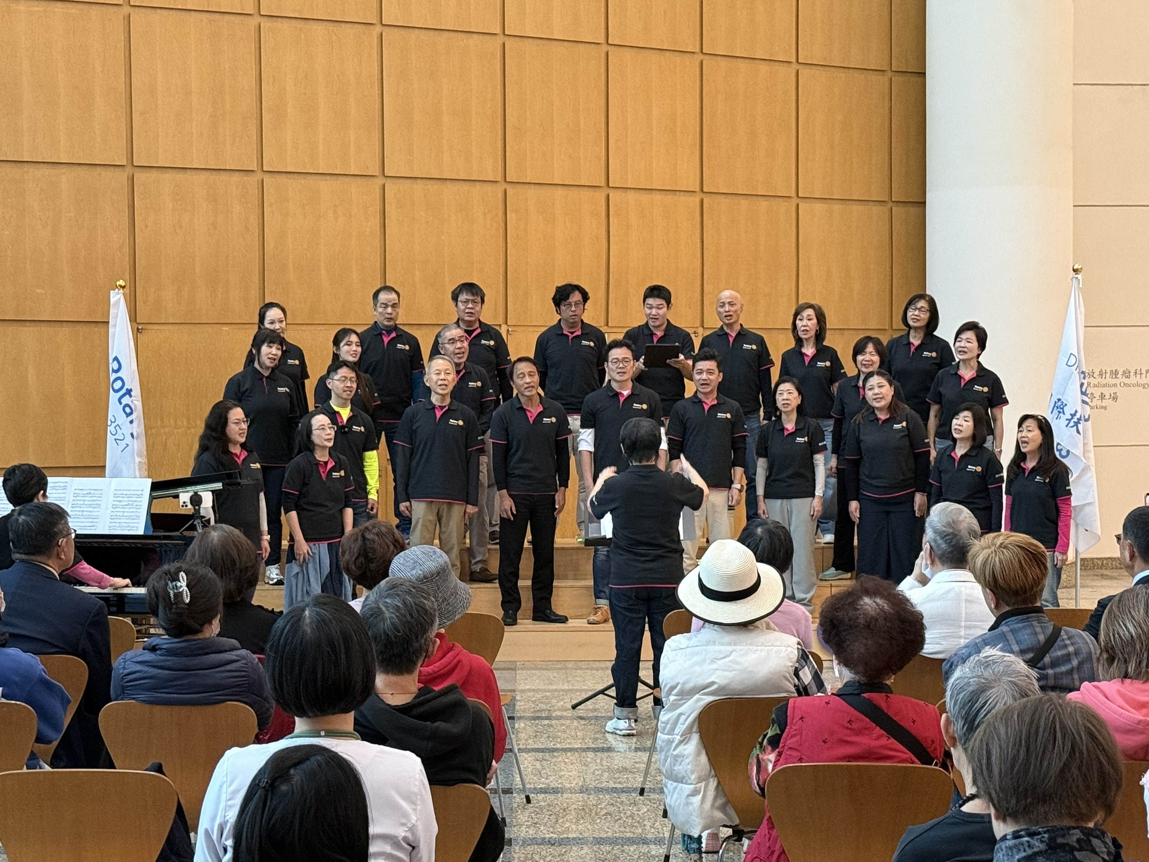 【和信醫院午間音樂會|愛與關懷之頌】 20251126的和信醫院,因為國際扶輪3521地區合唱團的到來,瞬間從平日的嚴肅氛圍,化為充滿笑容與溫暖的療癒空間。音樂確實是一帖能改變心情的妙藥,每一首歌都讓人感受深深的力量。本次音樂會帶來歡樂的歌曲演唱,為這一年畫下感恩的豐收句點,彼此祝福迎接全新的開始。特別感謝中山社家人們的熱情相伴— 中山合唱團就有六位社友成員,寶眷 PP 們也特地前來支持;團長更是我們中山的「情歌王子」,在領軍合唱之外,也獻上兩首自彈自唱的動人演出,讓現場氣氛更加美好。看到大家臉上閃耀的笑容,我們深深感受到: 愛、關懷與音樂,是最能彼此療癒的力量。 感謝3521地區合唱團帶來一場難忘的午間饗宴, 也感謝每一位中山家人的陪伴—— 因為有你們,每一刻都變得更加溫暖。