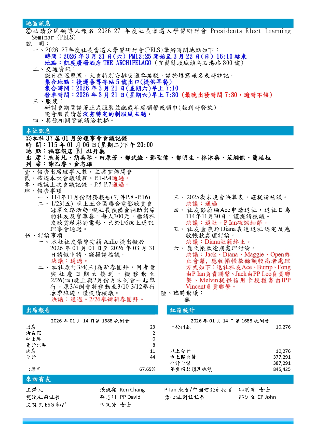 台北中山扶輪社章程、細則、內規