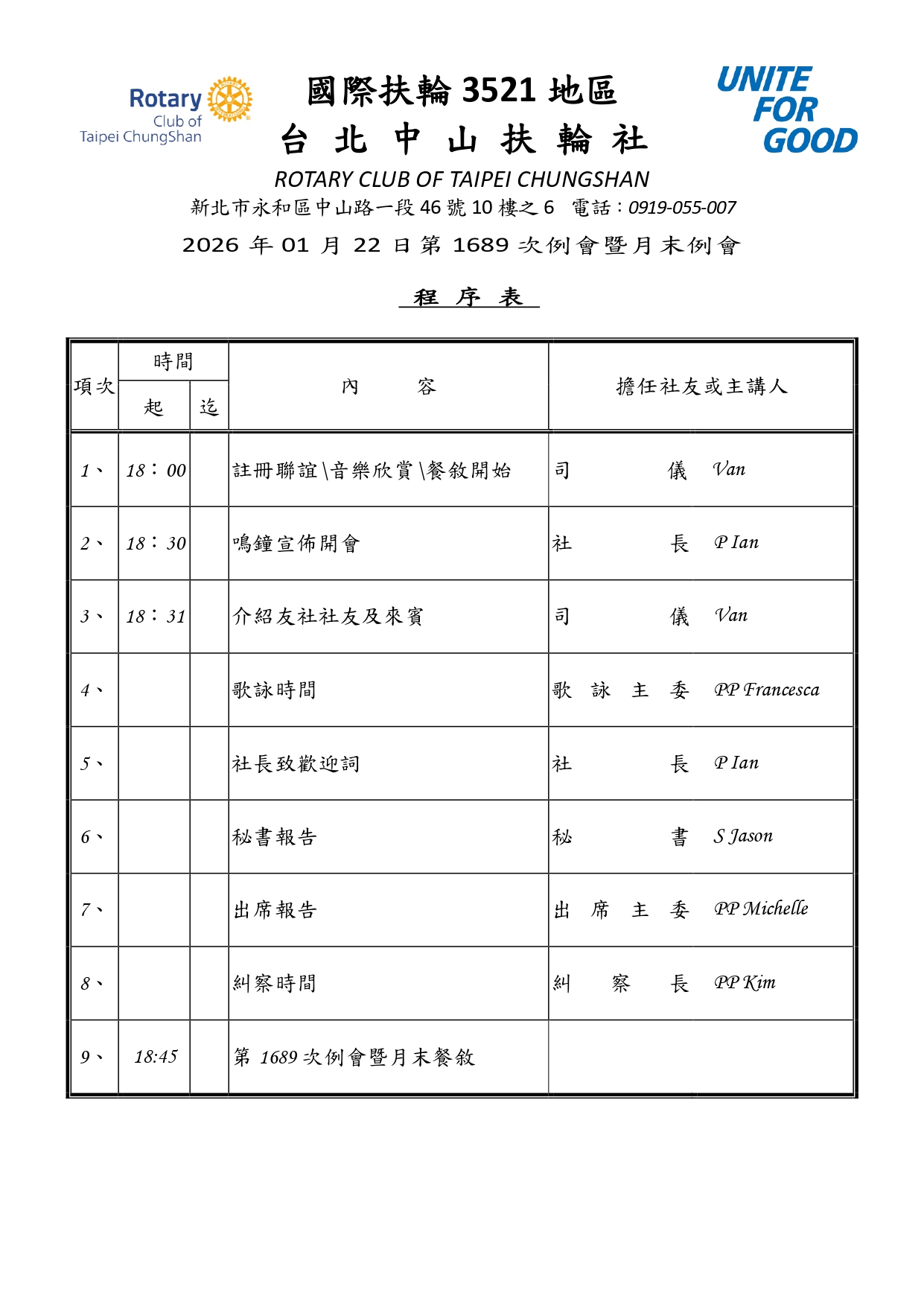 台北中山扶輪社社長就任感言